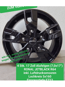 Mod. Jetblack R64 (7,0x17 ") inkl. Luftdrucksensoren, Lochkreis 5x160, Einpresstiefe ET53; Preis pro Stk. Euro 100,00 VB; wie neu - wg. Fahrzeugwechse... |